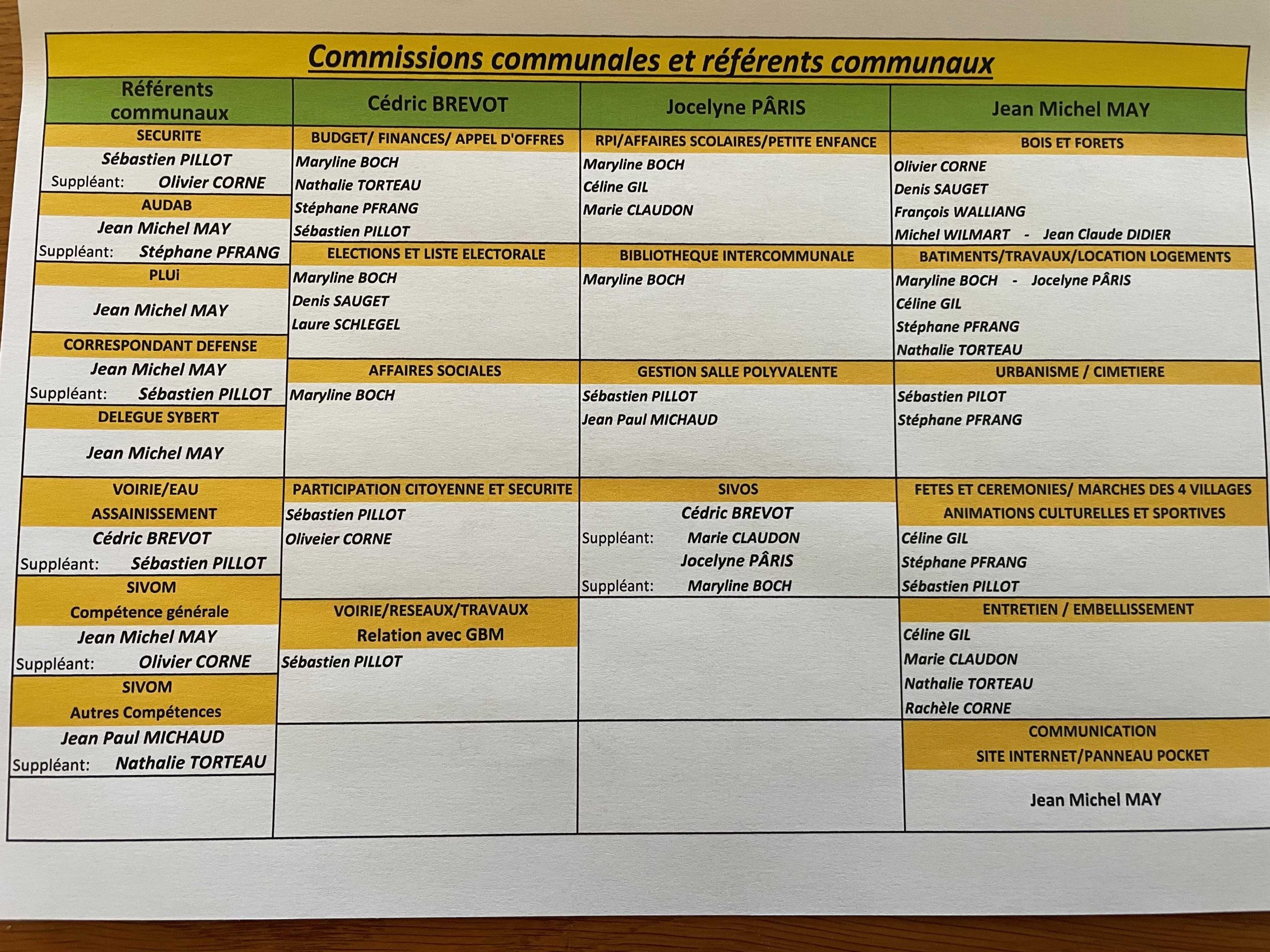 Voici la liste des commissions communales du conseil municipal :